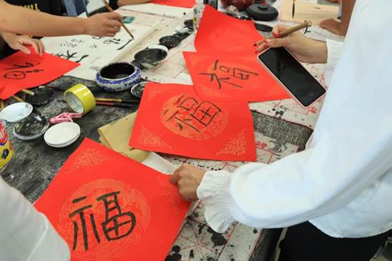 颁奖仪式结束后,同学们开展了“书法体验”“剪纸创作”“《中华上下五千年》配音欣赏”“击鼓传花”及“作画猜词”等交流体验活动。