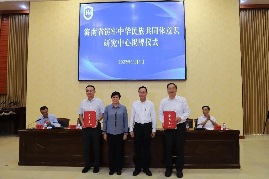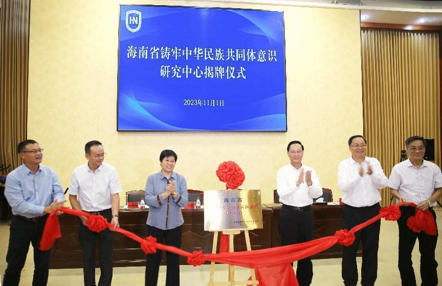 与会领导为海南省铸牢中华民族共同体意识研究中心揭牌。(省民宗委供图)