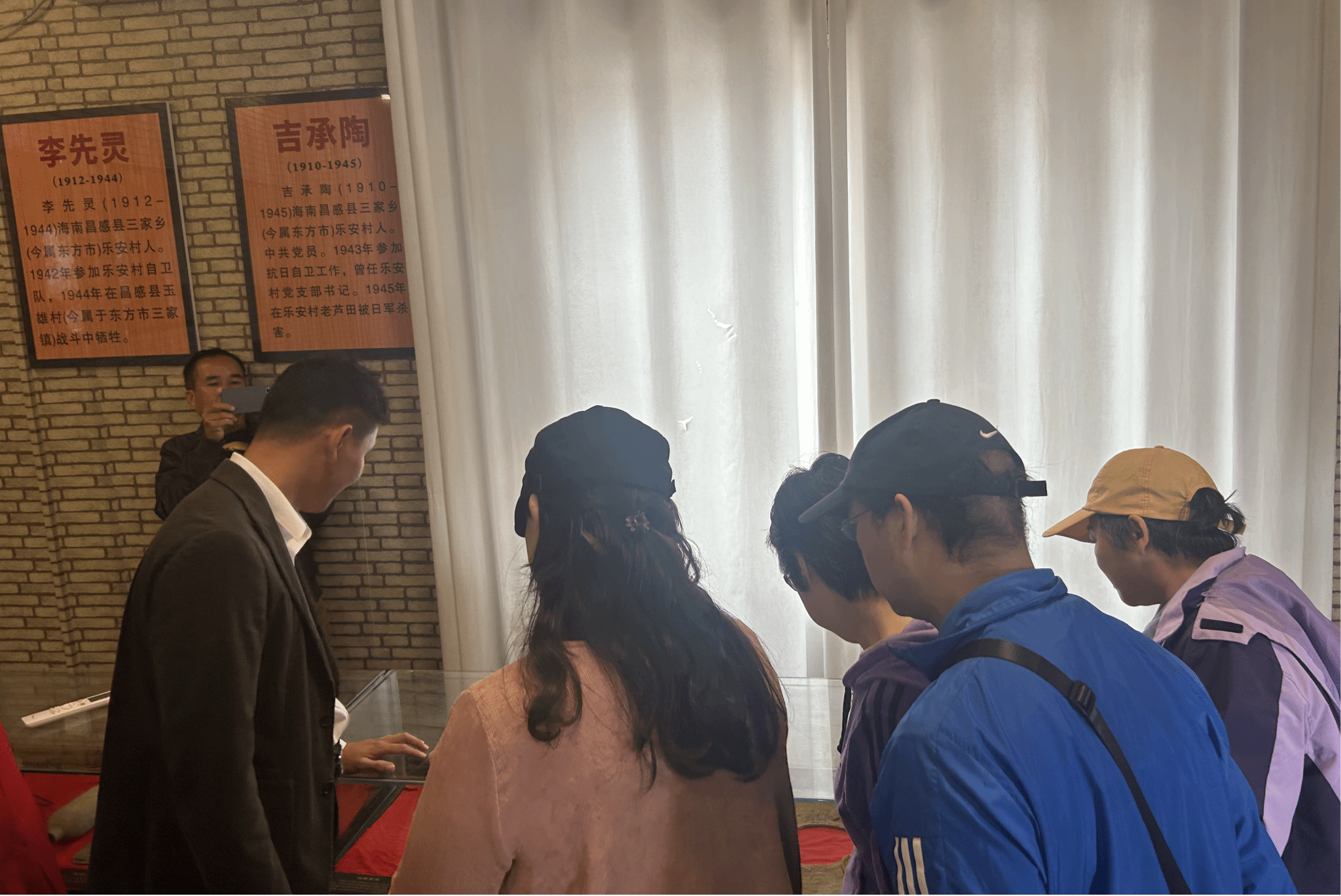 驻村公社社长吉昌超向党外代表介绍历史文物