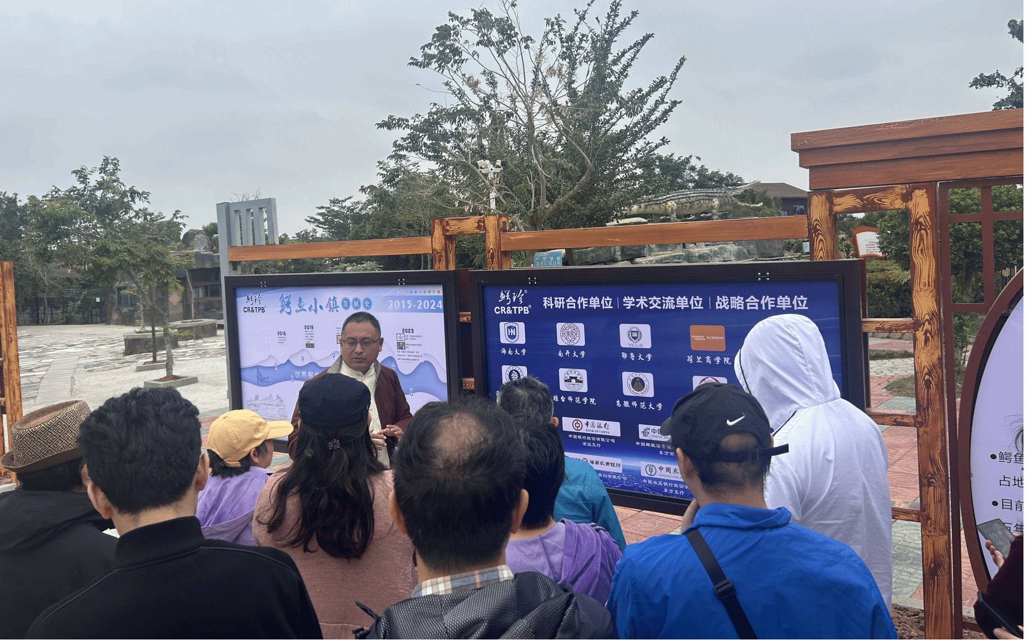 红草村驻村第一书记赵建国为党外代表介绍鳄鱼小镇